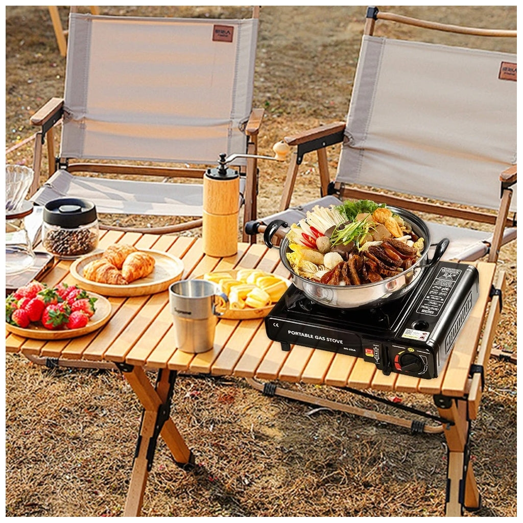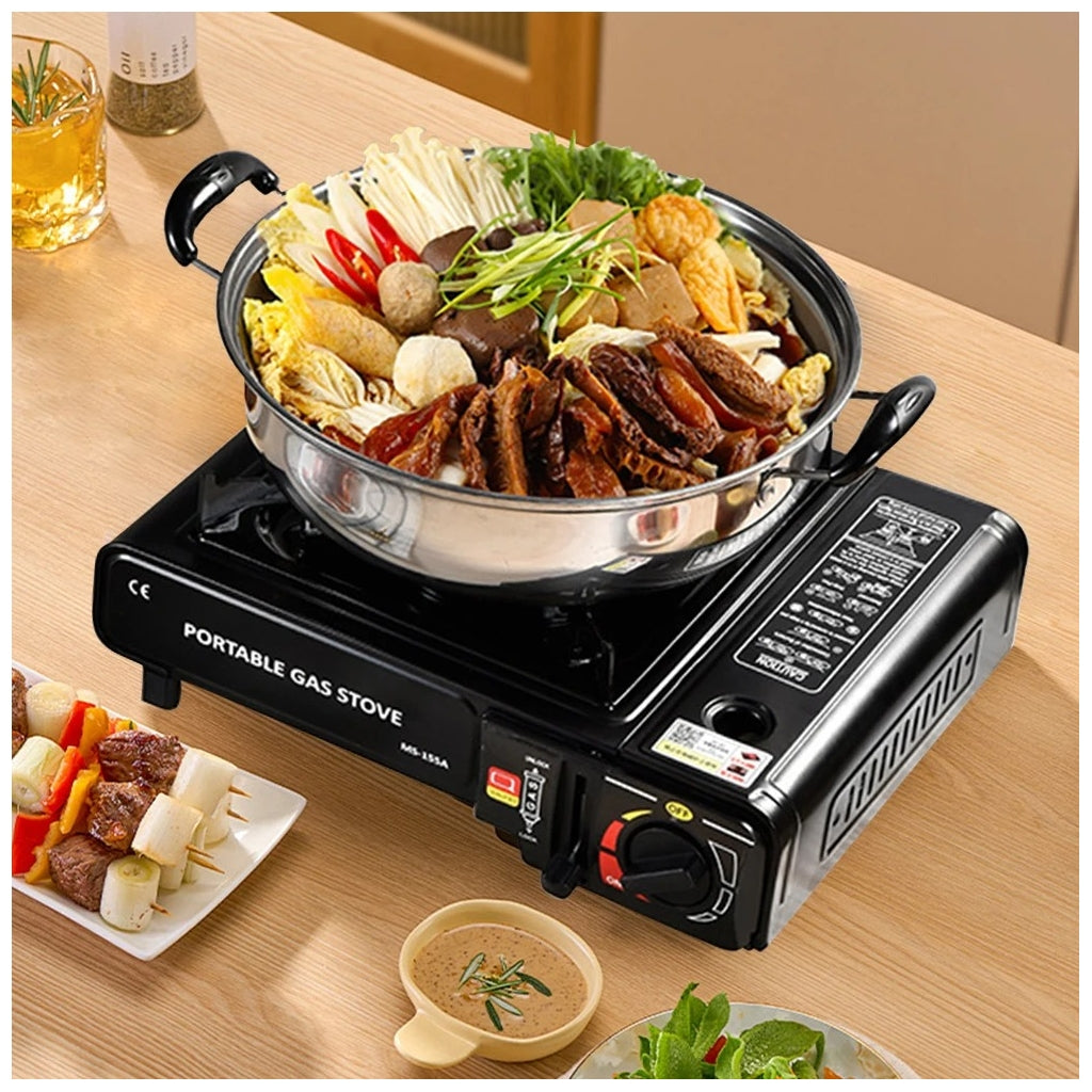 O fogão portátil a gás é a solução ideal para quem procura conveniência e eficiência na cozinha. Com um design compacto e robusto, este fogão é perfeito para uso doméstico, atividades ao ar livre ou situações de emergência.Características principais:Design compacto e portátil:Facilita o transporte e armazenamento, sendo ideal para espaços reduzidos ou para levar em viagens.Construção robusta:Feito com materiais de alta qualidade que garantem durabilidade e resistência ao uso diário.Fácil de usar:Equipado com um sistema de ignição piezoelétrico que elimina a necessidade de fósforos ou isqueiros.Compatibilidade:Funciona com cartuchos de gás butano, amplamente disponíveis e fáceis de substituir.Benefícios:Versatilidade:Adequado para cozinhar uma variedade de pratos, desde simples refeições até receitas mais elaboradas.Eficiência energética:Proporciona um aquecimento rápido e uniforme, reduzindo o tempo de preparação das refeições.Segurança:Inclui mecanismos de segurança que garantem um uso tranquilo e sem preocupações.Facilidade de manutenção:A estrutura simples permite uma limpeza rápida e sem complicações.