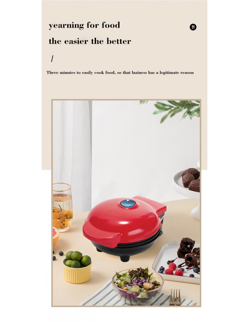 Mini Máquina de Waffles QA-CF26 – Delícias Prontas em Minutos!Prepare waffles deliciosos de forma rápida e prática com a Mini Máquina de Waffles QA-CF26. Ideal para pequenos-almoços, brunches ou sobremesas, esta máquina compacta e eficiente transforma qualquer receita num sucesso.Características Principais:Potência de 350W:Cozedura rápida e uniforme, garantindo waffles perfeitos a cada utilização.Design Compacto:Ocupa pouco espaço na cozinha, ideal para qualquer bancada.Placas Antiaderentes:Fácil de limpar e ideal para evitar que os waffles se peguem.Indicador Luminoso:Luz que avisa quando a máquina está pronta para uso.Benefícios:Ideal para uma variedade de receitas: waffles tradicionais, sem glúten ou até opções doces e salgadas.Perfeito para famílias ou para quem vive sozinho e gosta de cozinhar de forma prática.Portátil e fácil de guardar.Especificações Técnicas:Modelo:QA-CF26Potência:350WDimensões:15 cm x 15 cm x 8 cmMaterial:Placas antiaderentes com revestimento de alta qualidadePeso:0,8 kgVoltagem:220V